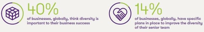 On average, only 40% of businesses believe diversity is important to their success, and just 14% are taking action to improve the diversity of their senior team.