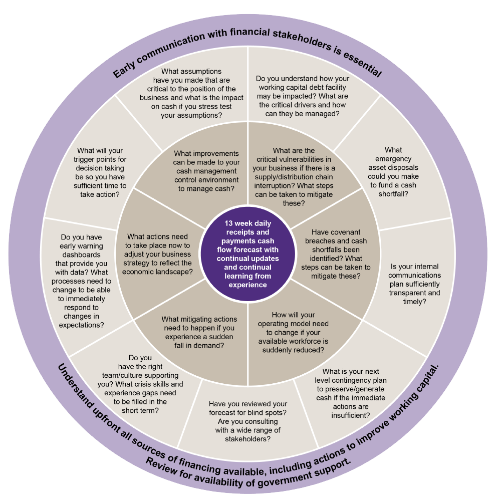 A robust cash forecast will put you in a stronger position with your stakeholders. Be proactive and engage with tax authorities, lenders, landlords and key suppliers to avoid missing out on financial and other support that may be available.